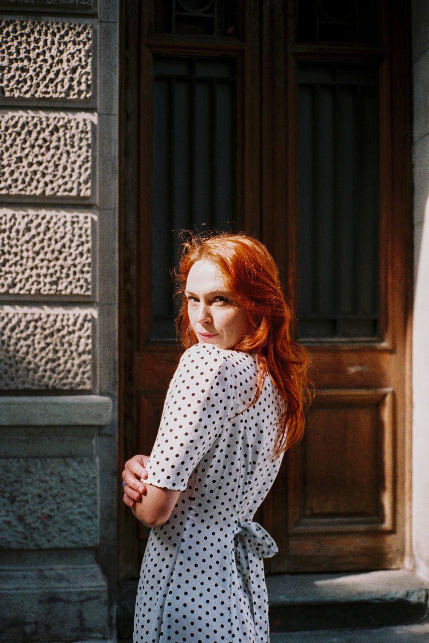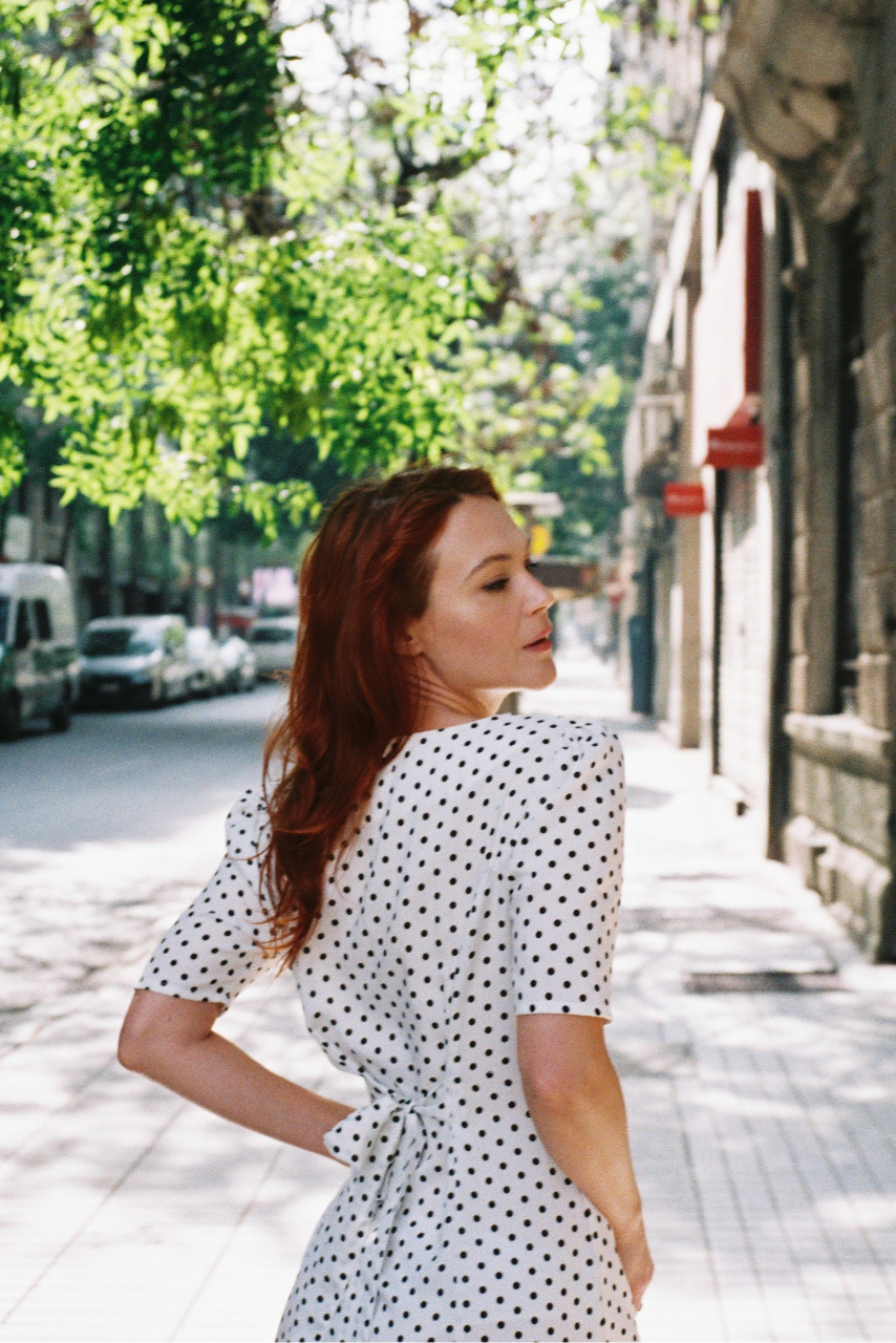 ¡El vestido Camila está hecho especialmente para el verano! Es muy encantador, ligero, romántico y sensual. Las mangas cortas, el escote redondo y el cierre frontal con botones te permitirán mostrar tus piernas tanto como desees. El clásico y juguetón estampado de lunares añadirá un toque de encanto y estilo retro a tu look, resaltando tu individualidad. Gracias al cinturón, puedes acentuar tu cintura para darle un toque más seductor a tu atuendo. ¡Puedes combinarlo con tus sandalias o zapatillas favoritas para el almuerzo o un aperitivo, y con tacones más altos para una cita!