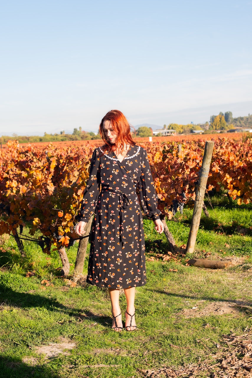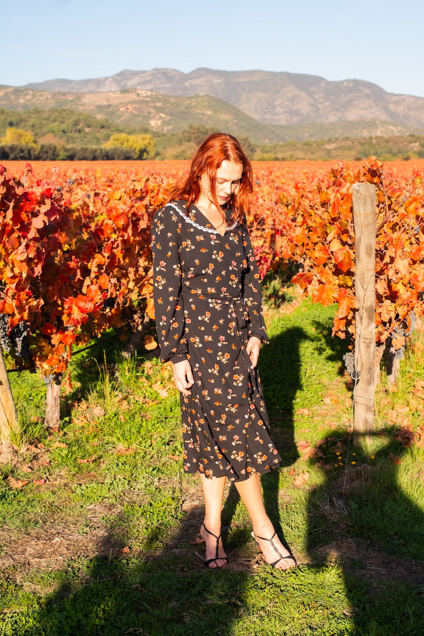 Un clásico de Lupin reinterpretado: el Vestido Louise regresa en una nueva versión confeccionada en una viscosa suave, con caída fluida y un tacto envolvente, con un estampado atemporal de claveles rojo-anaranjados.