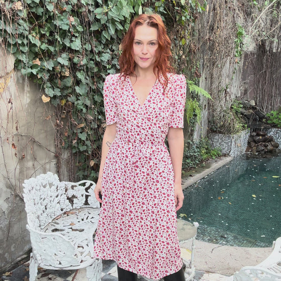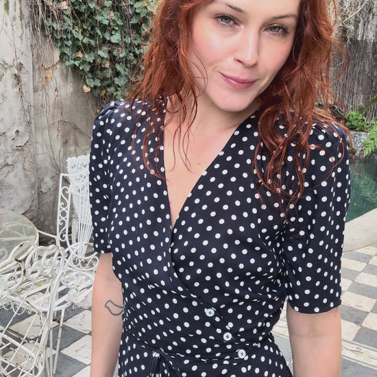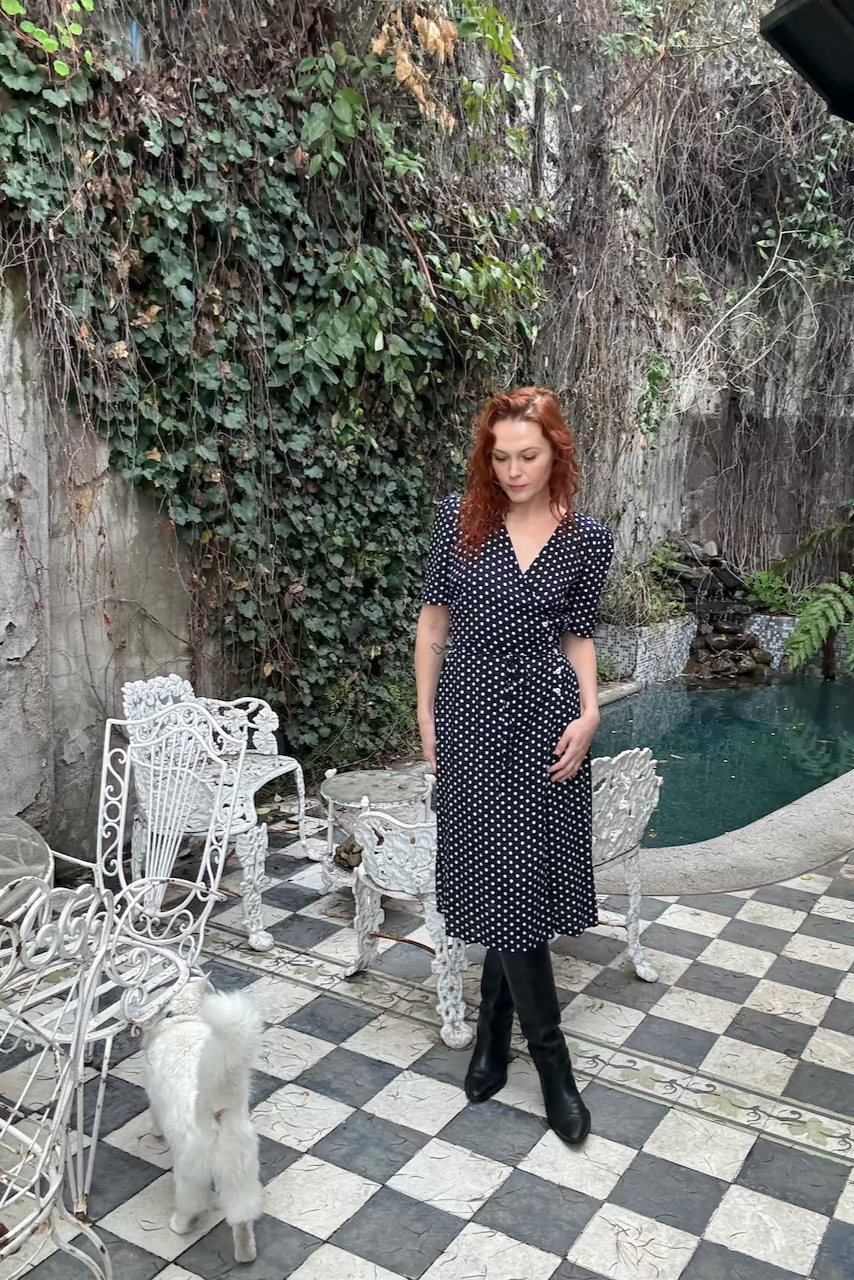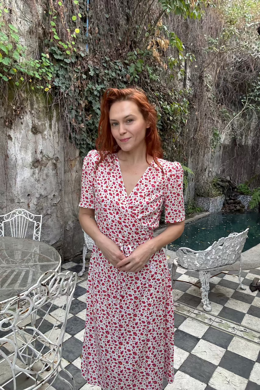 Este vestido es de tipo cruzado, lo que significa que ofrece mayor amplitud real en el busto, la cintura y las caderas. Se adapta perfectamente tanto a cuerpos pequeños como a siluetas con curvas. El cinturón permite ajustarlo a tu gusto y resaltar tu cintura de la forma más cómoda para ti.